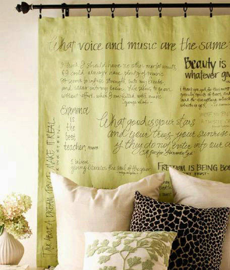 用臥室窗簾剩下的布料做塊床頭裝飾簾。即使你沒(méi)有床頭臨窗的尷尬,也能作為居室的亮點(diǎn)裝飾。 |