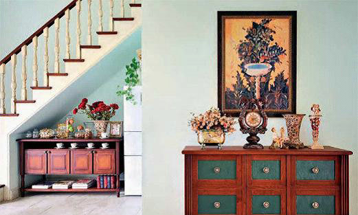 強(qiáng)身以淡雅的綠色調(diào)打底,濃郁的歐式符號(hào)構(gòu)造浪漫情調(diào),裝飾重點(diǎn)放在家具顏色、造型已經(jīng)裝飾物上。