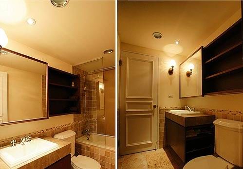 仿古瓷磚鋪裝而成的主衛(wèi),充滿鄉(xiāng)村田園的氣息,色彩上接近于溫馨的棕黃色系,與整體的配色相呼應(yīng),墻面瓷磚上方同樣沿用了鵝黃色,搭配起來讓主衛(wèi)顯得格外溫馨。