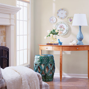 階段一:2、選擇一個靈感: 現(xiàn)在看這個角落,這個花園凳以分層釉和極富魅力的線條吸引了你的視線。其亞洲古董風格將引導(dǎo)這個房間的風格轉(zhuǎn)型。 |