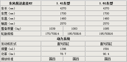 東風悅達起亞旗下的新款A(yù)0級轎車——K2,已在本屆上海車展中正式與廣大消費者見面,據(jù)悉這款車型將在今年6月份正式上市銷售。近日記者從知情人士處得到了東風悅達起亞K2的參數(shù),下面就讓我們根據(jù)K2的參數(shù)來搶先了解一下這款新車。 K2搭載1.4L和1.6L發(fā)動機 在車身尺寸方面,東風悅達起亞K2的長X寬X高分別達到了4370X1700X1460mm。而在軸距方面,這款車的長度達到了2570mm,完全可以滿足消費者對于空間的要求。另外,東風悅達起亞K2將依然搭載1.4L和1.6L發(fā)動機,這套動力系統(tǒng)與銳歐相同。