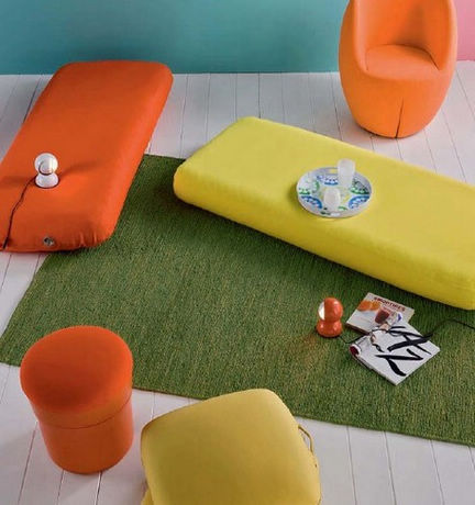 大面積色彩的拼接和幾何圖形的運用,讓家居充滿美感和時尚的藝術氣息的同時,迎合了今季主打的用顏色拼接修飾空間的年凈化潮流。清新繽紛的色彩,搭配色彩亮麗鮮明的花朵綻放其中,為居室?guī)硪唤z活躍的氣息,讓空間更顯明亮朝氣。 立體塑形設計的布藝座椅,以今年大熱的三文魚紅和鮮檸黃色,帶出了隨意的潮流感。草綠色地毯中和了艷色的表現(xiàn),制造出清涼感。