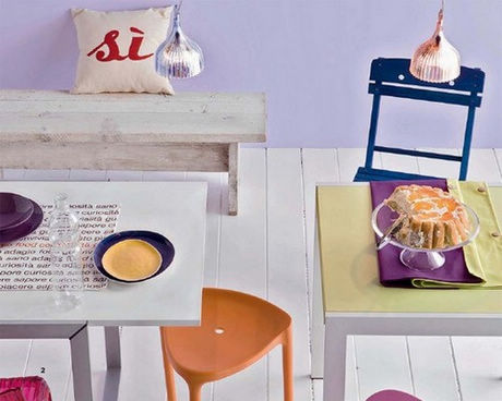 以白色、米色等淺色為主調的散發(fā)著規(guī)律感的學院風餐廳設計,座椅和餐具則大膽啟用橙色和紫色、藏藍和淺紫色調,打造出層次分明的貴族色系。 |