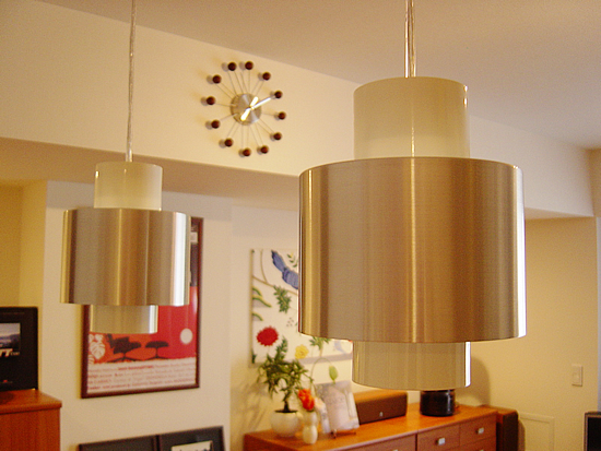 天花板的插板上安裝了起居室專用的射燈,然后連線再安上兩盞吊燈,雖然看起來有點牽強。