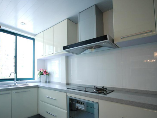 亮點:廚房用白色的L型櫥柜,是現(xiàn)代簡約風格的完美體現(xiàn),一盤小花使廚房充滿了溫馨。