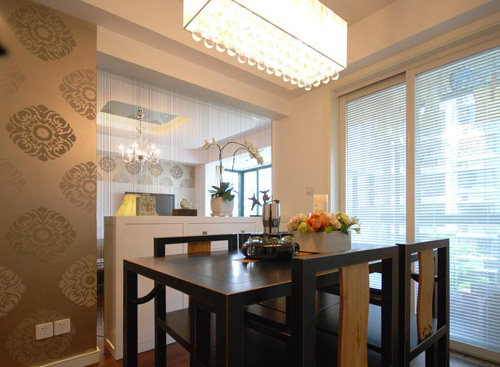 亮點:木質(zhì)方形餐桌溫厚儒雅,優(yōu)雅貴氣的墻紙陪襯,在這里用餐讓人不自覺地變成一個君子。
