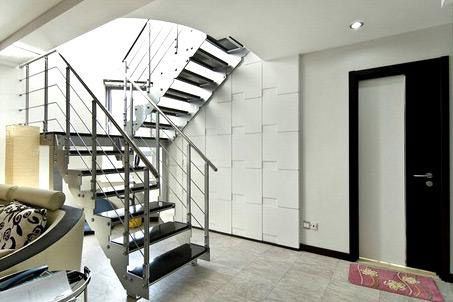 樓梯設(shè)計(jì):金屬質(zhì)感的樓梯,讓房間的現(xiàn)代氣息得以體現(xiàn)。