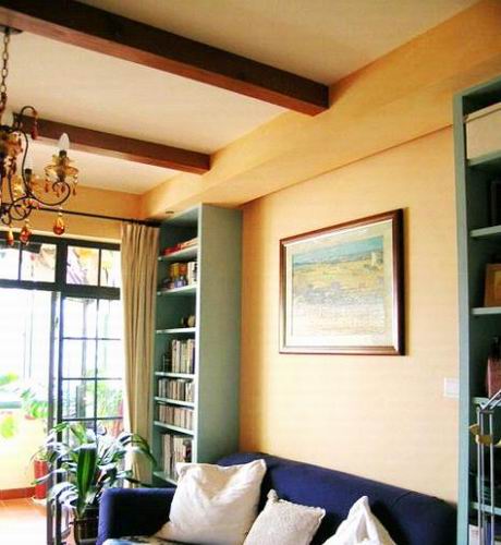 實(shí)木橫梁吊頂,對(duì)稱的綠色書架,很簡(jiǎn)單,卻已把法式鄉(xiāng)村的精髓展現(xiàn)無遺。 |