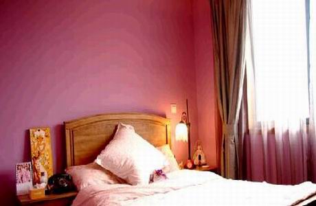 臥室墻面選擇了有些妖艷的熏衣草紫,展現(xiàn)單身女子閨房的無(wú)限柔情,灰色的窗簾中和了紫色造成的過(guò)于陰柔的感覺(jué)。