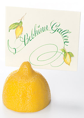 像這樣在切了一半的檸檬底座上插上卡片就變成了獨具創(chuàng)意的席位卡。如果你拒絕千篇一律的印刷體,也可以選擇親手繪制卡片上的內容。檸檬席位卡不僅顏色鮮亮外形趣致,更重要的是它擁有馥郁的清香。除了檸檬外,其余不少水果也能當做席位卡底座,如梨子、蘋果等?腿巳胱,水果還可以拿來食用,真實聰明又經濟的做法。
