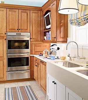 選用色調(diào)深沉的木質(zhì)柜面可以有效地提升廚房的品質(zhì),并具十足的親和力。加上不同色度的實(shí)木廚柜與之搭配,打造出極具有農(nóng)家魅力的鄉(xiāng)村風(fēng)格廚房。