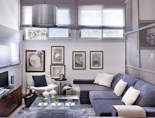 偏冷的銀色、灰色大量運用于空間中,透明材質的玻璃茶幾,避免了空間的擁擠感。小戶型的空間得到充分的體現(xiàn)與發(fā)揮。