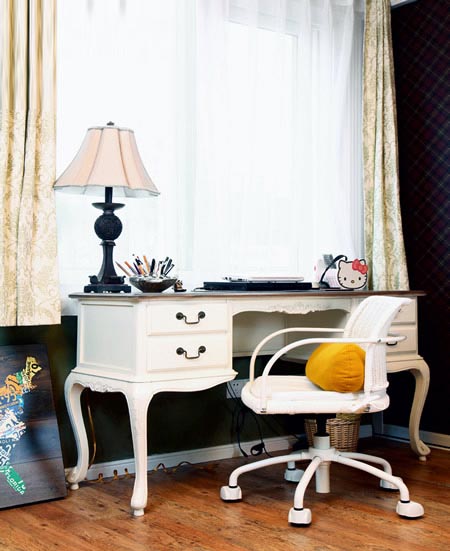 本來應(yīng)該是梳妝臺的小桌子現(xiàn)在臨時充當了書桌的職能,平常在這里上網(wǎng)也足夠了。
