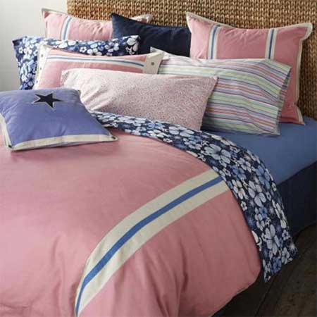 : 張揚(yáng)輕快的暖色+花朵圖案+可愛(ài)的橫條紋,純棉布藝的清新床品豁然點(diǎn)亮了整個(gè)臥室,讓你的小天地重新充滿(mǎn)陽(yáng)光的味吧!