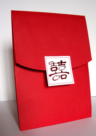 5、傳統(tǒng),復(fù)古婚禮的個(gè)性請(qǐng)?zhí)?BR> 如果你選擇傳統(tǒng)的中式元素較多的婚禮形式,經(jīng)典的紅色系請(qǐng)?zhí)麆t是你的不二選擇。注意在請(qǐng)?zhí)弦布尤胍恍┲惺皆亍1热鐕媹D案等,讓你的喜帖更出彩。