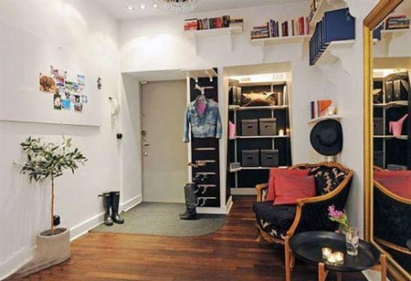 亮點1:進門處的墻面也被充分利用起來掛衣服、擺鞋子,還可以坐著喝杯咖啡?吹缴嘲l(fā)椅上面的墻面了嗎,是不是得感嘆對于墻面空間功能的充分挖掘。