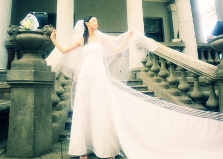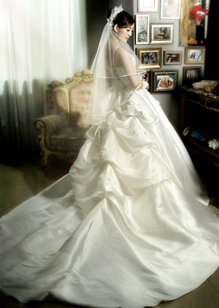 拍照當天新娘請穿肉色內衣并帶一雙合腳的高跟鞋,以搭配比較長的禮服。
