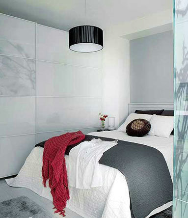 整面墻的大型家具提供了臥室充足的收納空間,干凈的衣柜,簡潔的家具是這一純白空間中跳躍的音符,帶給我們溫暖的視覺沖擊。
