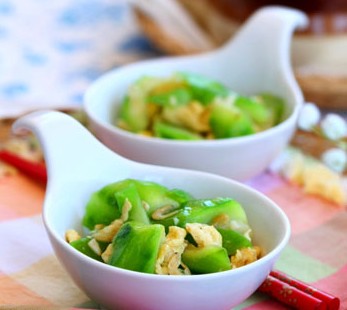 3、絲瓜要現加工,現配現炒,否則會發(fā)黑,最后加入鹽調味,絲瓜才不會變黑。 |