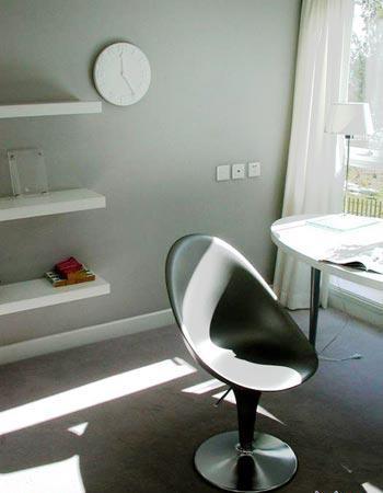 陽臺上又設(shè)了一個書桌,坐椅非常有質(zhì)感,陽光透進(jìn)來射在坐椅上,就像一件藝術(shù)品。