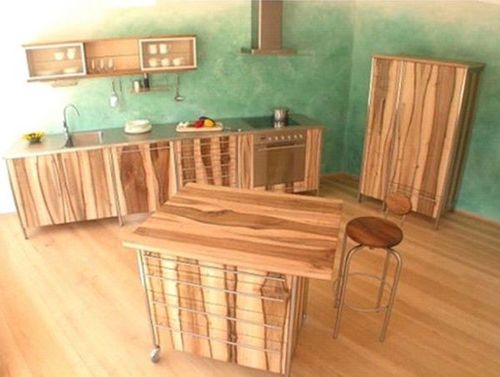 除了不可思議的外觀,再生木的櫥柜還具有環(huán)保功能。我也愛死了這自然紋理的視覺效果。