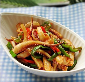 原料: 魷魚須一斤、青椒2個、洋蔥半個、胡蘿卜半個、紅椒少許。 調料: 蔥姜蒜適量、老干媽一勺、海鮮醬一勺、鹽、料酒、胡椒粉、生抽、糖、水淀粉、香油。 做法: 1、準備好所有的食材,魷魚須去膜洗凈切段,加入料酒,糖,胡椒粉,鹽腌制。 2、洋蔥去皮切條,青紅椒,胡蘿卜全部切絲。,蔥姜蒜切碎,準備好老干媽和海鮮醬。 3、炒鍋到油燒熱倒入魷魚翻炒,炒至魷魚變色堅挺出水關火,盛出魷魚把湯汁倒掉。 4、原鍋洗凈再加入適量的油爆香蔥姜蒜,加入一勺海鮮醬,在加入一勺老干媽炒出香味。 5、倒入所有的配菜翻炒片刻,加入生抽,糖,鹽,料酒急促翻炒。 6、再把炒過的魷魚倒入翻炒均勻,淋入香油。 7、最后加入少許水淀粉勾薄芡翻炒均勻關火。 啰嗦一下: 魷魚要先炒出水分盛出,把水分倒掉,這樣炒出的魷魚才會好吃,也能去除腥味。 |