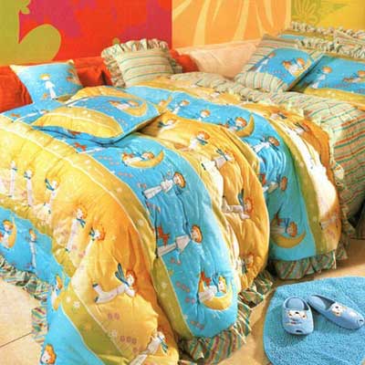 : 兒童床品的設(shè)計是最自由的?梢詫憣嵰部梢允乾F(xiàn)實的變形,設(shè)計要素就是顏色鮮艷,鮮艷的顏色有利于兒童對世界積極認(rèn)知。童心未泯的****也可以大大方方地在床品中打撈童心,因為在睡夢中,是沒有年齡限制的。