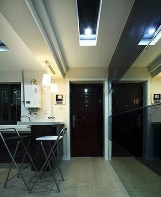 進門左手邊是大片的玻璃。小小的空間,得到了最大限度的視覺延伸。