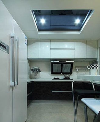 灰玻吊頂,黑白條紋櫥柜,雙開門冰箱,所有元素都使廚房變得明亮、大氣。置身于此,讓人覺得做飯其實也并非是個苦差。