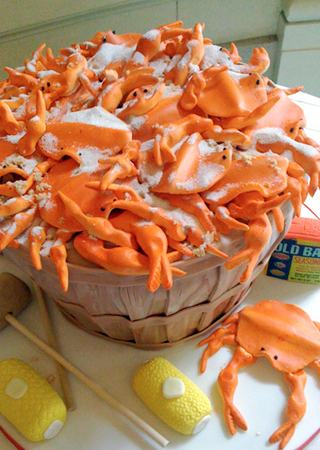 80后的我們可以惡搞可以玩些新花樣,滿桌子的螃蟹疙瘩十分有趣,它們可是能吃的。