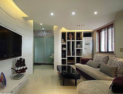 客廳采用白色作為墻面的主色調(diào),同時(shí)加入了米色的沙發(fā)和地磚,柔和了空間的色彩,讓簡(jiǎn)約的環(huán)境中透出一抹溫馨的感覺(jué)。