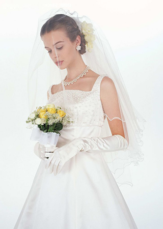 優(yōu)雅系 玩轉(zhuǎn)低調(diào)才是王道,你不需要唯美薄紗,帶有帽網(wǎng)的設計感小帽或一些黑色飾物的點綴,一個傳統(tǒng)發(fā)髻,典雅風旋即綻放! 搭配捧花 傳統(tǒng)型:適合搭配各色小朵花卉,如純白色馬蹄蓮、郁金香或蝴蝶蘭等長莖花卉組成的捧花秀麗大方。切記!此時花束只需幾株便能展現(xiàn)完美!微妙的色彩搭配會營造更好的效果。不要選擇明快的顏色,你肯定不想你的捧花被搶了風頭! 新潮型:可以嘗試簡潔的單株花卉或丁香花等叢生花卉。捧花形狀應采用三角形即下寬上窄,否則會看起來四四方方的;ㄊ荒馨舻锰o,否則花束會遮住你的臉,或是占據(jù)大半張照片。尤其是你選用紫羅蘭或芒果色等絢麗色調(diào)時,一定要注意。 |