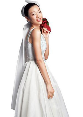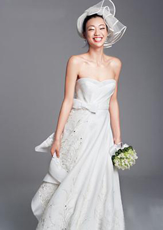 臀墊的Up上升線條和裙擺薄透雪紡紗的多層處理,空氣感和輕盈感已然呈現(xiàn),在裙邊上鑲嵌的大量細(xì)小珍珠和水晶,在重量上恰到好處地防止婚紗隨風(fēng)舞動,為X廓形多增幾分沉穩(wěn)感。 裹胸裙選用素緞和歐根紗為主材料,簡約廓形,利落剪裁。整個裙擺不對稱的折紙設(shè)計為主,在邊緣處由密到松的刺繡花紋上鑲嵌大大小小的水晶做點綴,因為花紋和水晶分布的細(xì)致均勻,整個婚紗在純凈之感中顯現(xiàn)高貴。 不對稱的折疊裙擺,在新娘與新郎的領(lǐng)舞環(huán)節(jié),最能顯現(xiàn)其輕盈優(yōu)勢,在舞動間揚起裙擺,能帶來美妙的視覺畫面,這對新娘的舞技來說絕對加分。 婚紗走純凈輕盈路線,頭紗也應(yīng)如此。選用素緞質(zhì)地的頭紗做層疊處理,然后像復(fù)古氈帽一樣佩戴在頭頂,既有美妙的曲線造型,又有氣勢,而且曲線的漸層設(shè)計還和裙擺的折疊相呼應(yīng)。 素緞雙肩帶的70年代的古典端莊款式,胸部的捏褶處理讓胸形看起來更加飽滿,腰封下的水晶刺繡設(shè)計低調(diào)而華麗,組成的圖紋極具歐洲宮廷風(fēng)格,這和歐根紗的高級之感相吻合。白色珍珠耳環(huán)和白色底水晶項鏈營造整體造型的完美感。 雙肩帶細(xì)腰A字裙擺Look,是今年秋冬國際時裝秀場的最佳風(fēng)格呈現(xiàn),優(yōu)雅復(fù)古的韻味讓新娘的婚禮派對更具時尚話題。A字裙時刻展現(xiàn)優(yōu)雅氣息,即使穿著芭蕾舞鞋或是踢踏舞鞋也會顯得相當(dāng)?shù)皿w。 |