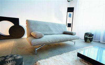 冷硬的金屬底座,搭配灰黑色的柔軟座墊,細(xì)長(zhǎng)的同色靠墊,拉長(zhǎng)了線條,延續(xù)了一股男性的風(fēng)格。