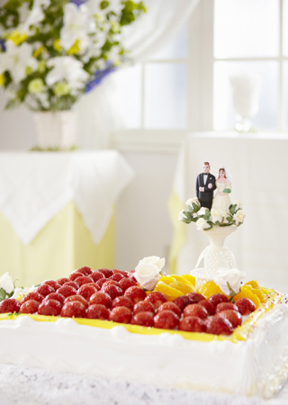 1、各大酒店的餅房出品婚宴蛋糕,即使為單層,也不失華麗和隆重,選擇樣式和素材豐富,但需要提前3個(gè)月預(yù)訂。