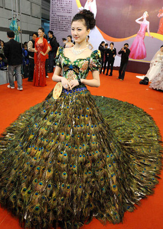 這件婚紗上下用了上千根孔雀的羽毛,價(jià)值不菲。不過愛好環(huán)保的ELLE還是提倡不要為了美麗而傷害到東西,如果喜歡羽毛類的服飾,可以采用人工羽毛代替。