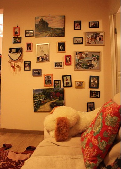 照片墻和沙發(fā)之間,是通往臥室的門。