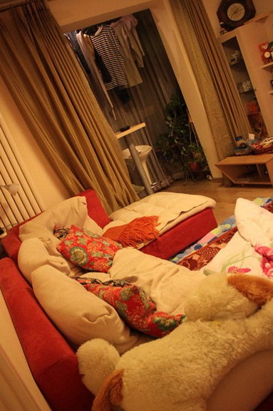 先上客廳,照片都是我晚上拍的,所以色調(diào)比較“黃”,哈哈,客廳的沙發(fā),很軟很舒服,一下子就陷在里面的感覺。