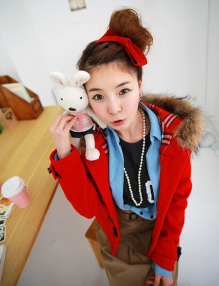 一個(gè)人的旅行,寬條紋T恤,修身的牛仔褲,高筒的靴子,再罩上一件飽和度很足的紅色呢外套,很隨行,很精神。