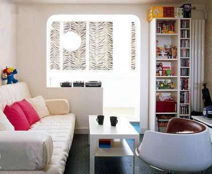 論客廳、臥室,還是廚房。房中的每個角落,都在向我們昭示著生動的線條混搭,以及鮮明的色彩呼應(yīng)。就客廳而言,圓弧線條酒杯轉(zhuǎn)椅和潘東椅,沙發(fā)旁的圓角邊柜及客廳與陽臺的過渡墻上的圓角,都傳遞出濃濃的現(xiàn)代感。而棱角平直的白色吸頂燈、雙層L形書架及茶幾,則給人干凈、利落、明快的感覺。如此直線加圓弧混搭出的客廳將線條的變化之美印映于視覺之上。