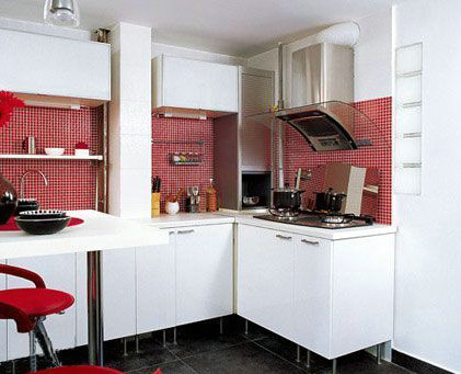 廚房工業(yè)感濃重的拼接墻面與同風(fēng)格的石塑板地面和諧統(tǒng)一。墻上架起的白色桌板,兩旁擺放的紅色吧凳,立刻劃分出快捷便利的用餐區(qū)。墻的另一側(cè)便是洗手臺,設(shè)計師劉東新在這里將整個洗面盆的線條,一再上揚提升,形成了一個大大的L形,以此增加了空間的向上進(jìn)深感。設(shè)計師的這個設(shè)計,巧妙地彌補了整個區(qū)域帶給人的狹窄感,呈現(xiàn)出了空間的多樣性變化。 |