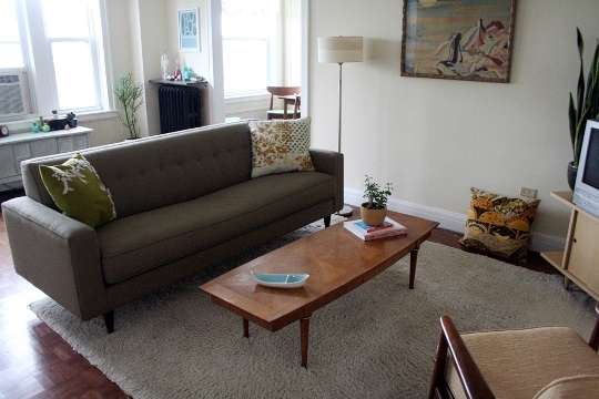臥室的沙發(fā)以灰色系為主,給人以莊重之感。