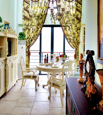 墻身以淡雅的綠色調(diào)打底,濃郁的歐式符號(hào)構(gòu)造浪漫情調(diào),裝飾重點(diǎn)放在家具顏色、造型以及裝飾物上。 |