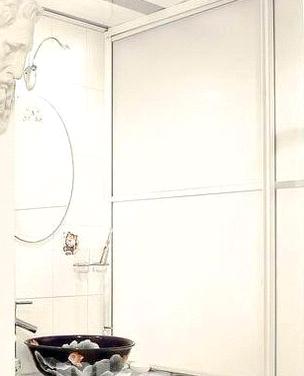 濕區(qū)是座便器和淋浴房,兩個區(qū)用磨砂的玻璃移門相隔。