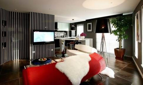 縱觀整個(gè)空間環(huán)境無(wú)不洋溢著現(xiàn)代美學(xué)觀念,對(duì)構(gòu)造細(xì)節(jié)的關(guān)注度以及人體工程學(xué)的合理運(yùn)用高于任何界面的裝飾,幾何圖形樣式的家具和裝飾地毯采用簡(jiǎn)單的材質(zhì)和水平線條,空間陳設(shè)更是兼顧彈性和實(shí)用。