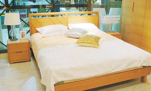 這款板式床,順應木材天然紋路,通過大塊板材榫接而成,木紋紋理緊密均勻,擁有清淡的黃金色澤和原始木香。床架構造呈自然弧度,床位設有儲物抽屜,方便實用,可與其他家具和諧搭配。