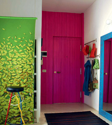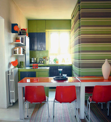 滿足八人就餐,取下懸掛的餐桌復(fù)合功能家具讓家的使用功能更全面。 果綠色的廚房備餐區(qū)讓不大的空間顯得清爽活潑。沒(méi)有瓷磚拼貼,完全手工繪制的磚面效果,即節(jié)省成本又帶來(lái)別樣的藝術(shù)氣質(zhì)。艾比可以發(fā)揮無(wú)限的想象力,把冰箱櫥柜都涂成自己喜歡的色彩。樹(shù)脂很好的附著力讓家居色彩改變成為一種樂(lè)趣。 |