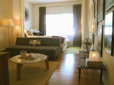 用布簾將客廳和臥室隔開(kāi),自有小窩的溫馨。