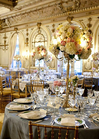 除了令人感動的婚禮流程使人印象深刻之外,在婚禮上精致漂亮的餐桌裝飾往往決定了整個婚禮的定位和品質(zhì),它也進一步影響整個會場的氛圍。新人們可以為婚禮選擇適合自己婚禮主題的布置格調(diào),像不同季節(jié)的水果、不同式樣的卡片,以及好看的絲帶、水晶等都可以成為出色的點綴小物。 與正方形或長方形餐桌相比,每張圓形餐桌用一個中央花飾布置就足夠了,如果中央花飾的體積較大,那么餐桌的尺寸也需要按比例增加,以便為客人們提供足夠的用餐空間。餐桌中央裝飾除了運用花卉外,還可加入精美燭臺、貝殼等元素,這樣會令餐桌變得更加生動有趣。 裝飾正方形或長方形餐桌時,因為這樣的餐桌需要精心裝扮的部分比圓形餐桌要大。但餐桌花飾的高度不能太高,以免擋住客人們的視線妨礙交談。 |