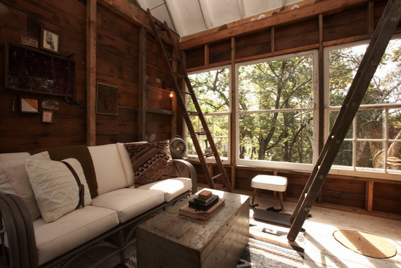 三層小閣樓的三角位置,弄成等腰三角形,放置書(shū)本,利用到不好利用的位置,再隨意地加上一個(gè)床褥,安安靜靜的小天地就建造成功了,一邊看書(shū),一邊聞著淡淡的木香,生活悠然自得。